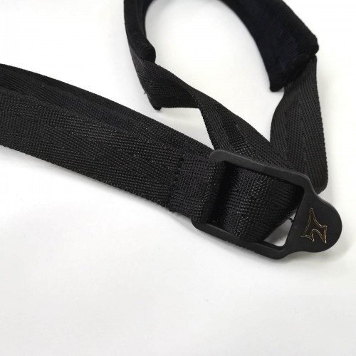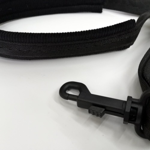 Sangle en nylon tressé, tour de cou rembourré mousse doublé velours pour le confort du musicien.